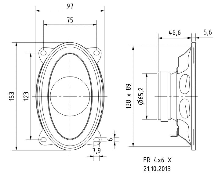 9 x 15 cm (4" x 6") широколентов говорител с конусна пищялка.