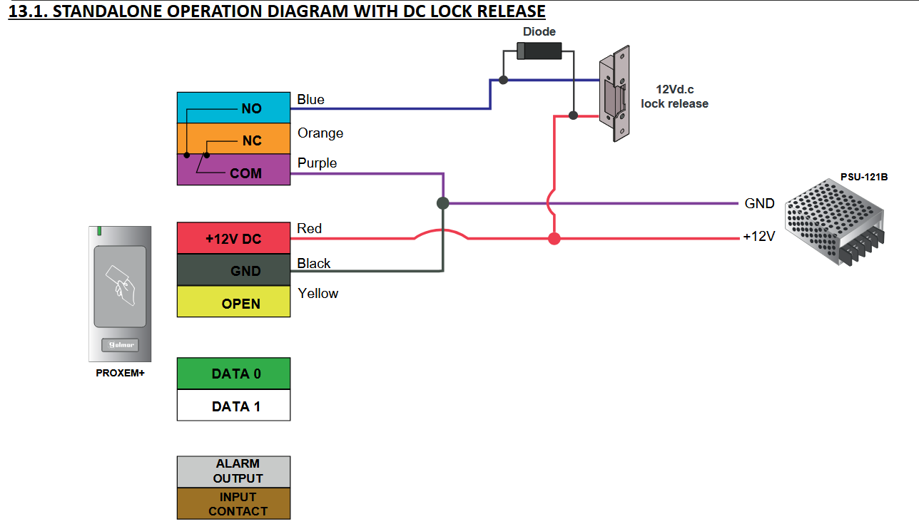 2. Не забравяйте да свържете предоставения диод паралелно с електромагнитната брава, за да защитите оборудването.